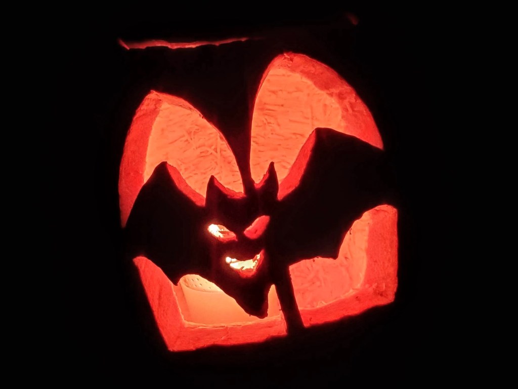 Happy Halloween! This year, my boyfriend Marc carved a masterpiece: the “Frank-Einstein” pattern from Symmetry Magazine. I decided to take the easy route and carve a bat, but I did help with Frank-Einstein’s hair.