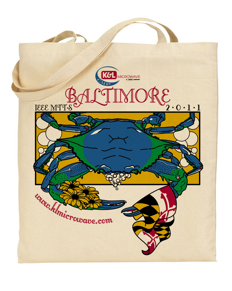 Each year, K&L Microwave gives away a tote bag at the IEEE MTT-S trade show. The show is held in a different city every year, so each show’s design is unique.