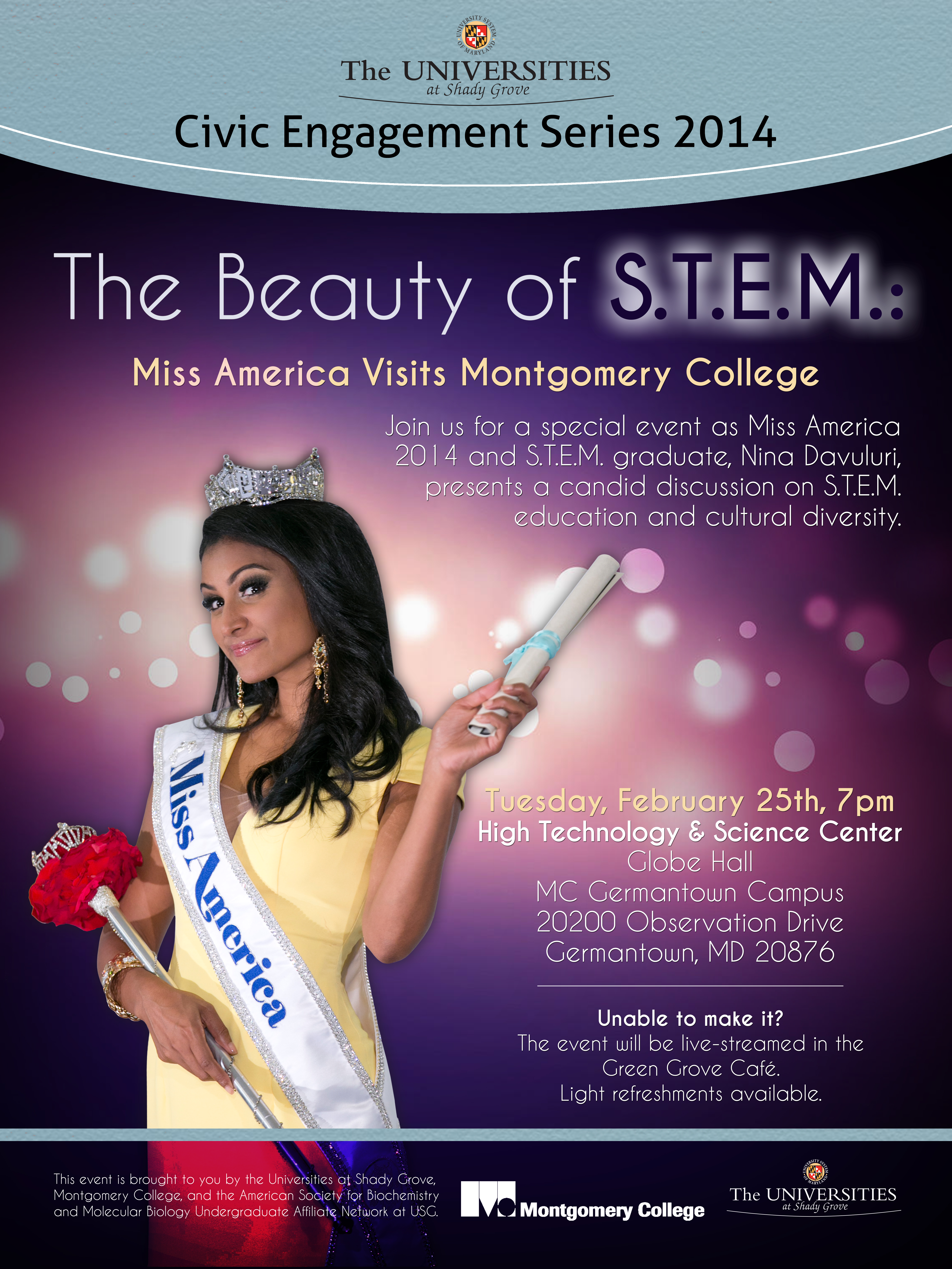 Mrs. America 2014, Nina Davuluri, presented a discussion at Montgomery College on the value of STEM education and cultural diversity. The panel was telecast at The Universities at Shady Grove.